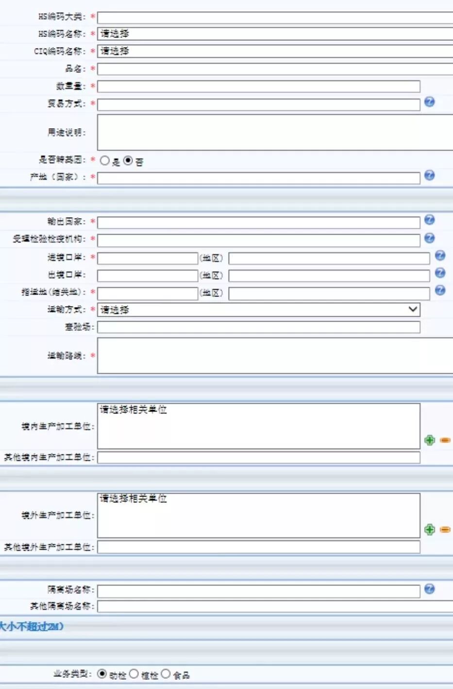 11、“境外生产、加工、存放单位”、“其它境外生产、加工、存放单位”。进境水产品、乳品等境外企业,必须从下拉列表中选择。其他产品填写在“其他境外生产、加工、存放单位”一栏