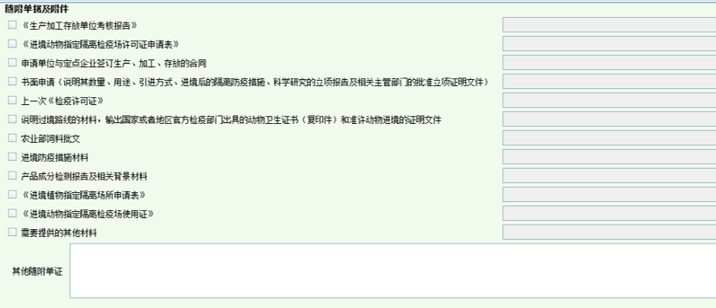 如果提交的随附单证不在列表内,须在“需要提供的其他材料”一栏中上传;