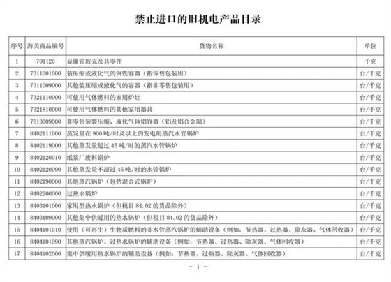 为进一步完善进口制度,依据《中华人民共和国对外贸易法》《中华人民共和国货物进出口管理条例》等法律、行政法规和有关规章,商务部、海关总署对禁止进口的旧机电产品目录进行了调整,现予公布,自2019年1月1日起执行。 本公告由商务部、海关总署负责解释。以往有关规定凡与本公告不一致的,以本公告为准。2001年12月27日外经贸部、海关总署、质检总局公布的《禁止进口货物目录(第二批)》同时废止。
