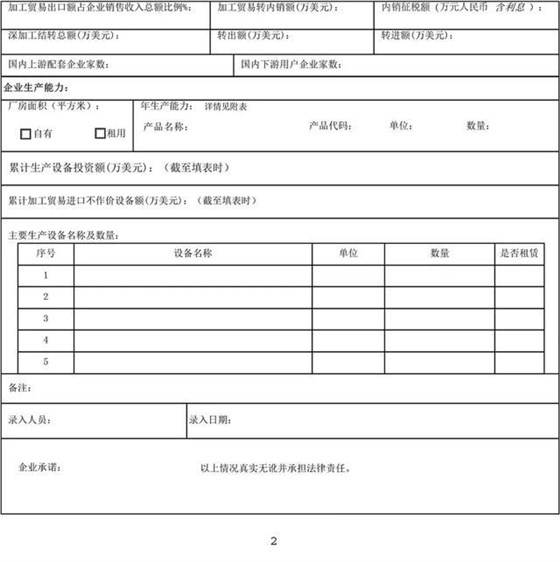 2、采用企业承诺制,在加工贸易企业经营状况及生产能力信息系统登记信息。
