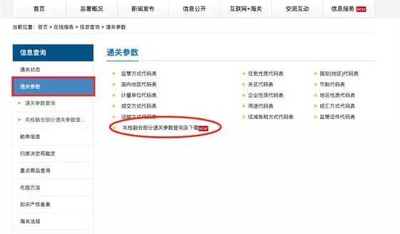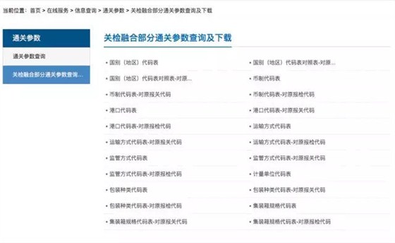 海关总署门户网站(首页 > 在线服务 > 在线查询 > 通关参数)中“关检融合部分通关参数查询及下载”区域下载。
