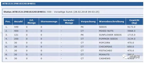 修改后的海关舱单: