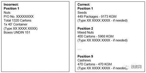 ●确保货物的名称、位置、重量和件数与相关商业单据上的列出完全一致。