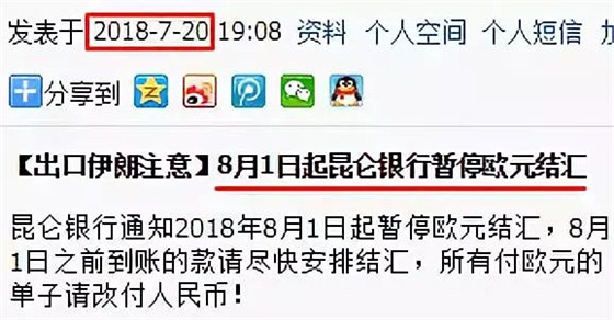 在此也提醒做伊朗生意的朋友,通过昆仑银行或昆仑银行代理结汇的,务必事先提醒伊朗客人在申请外汇额度时申请人民币,而非欧元!