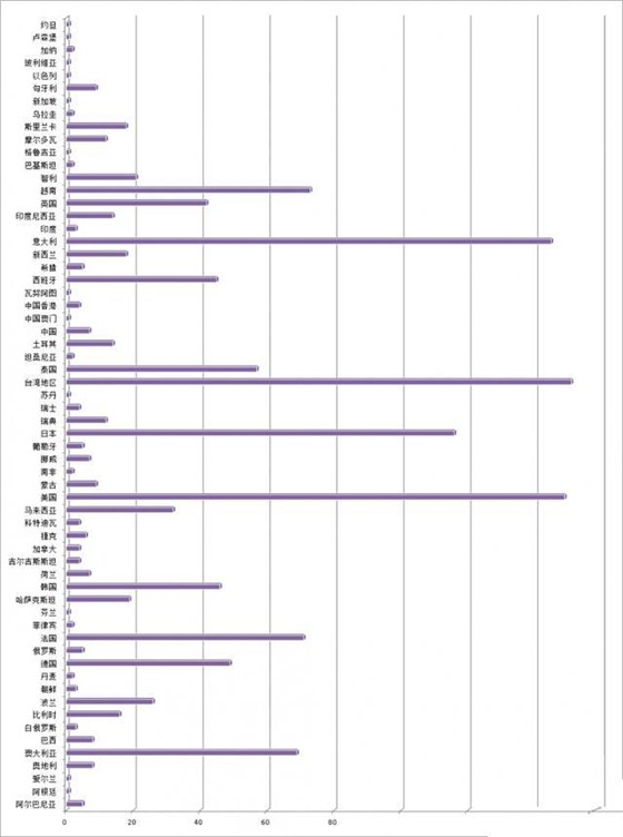 统计显示,这些食品来自六十多个国家或地区。其中,意大利、美国、日本这些国家以及台湾地区的不合格食品居多,尤以台湾地区的最多。