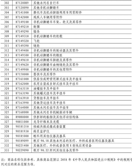 附件:根据商务部2018年第55号公告和《国务院关税税则委员会关于对原产于美国约160亿美元进口商品加征关税的公告》(税委会公告〔2018〕7号),现公布经调整的对美国输华商品加征关税商品清单二,自2018年8月23日12时01分起实施加征25%关税。